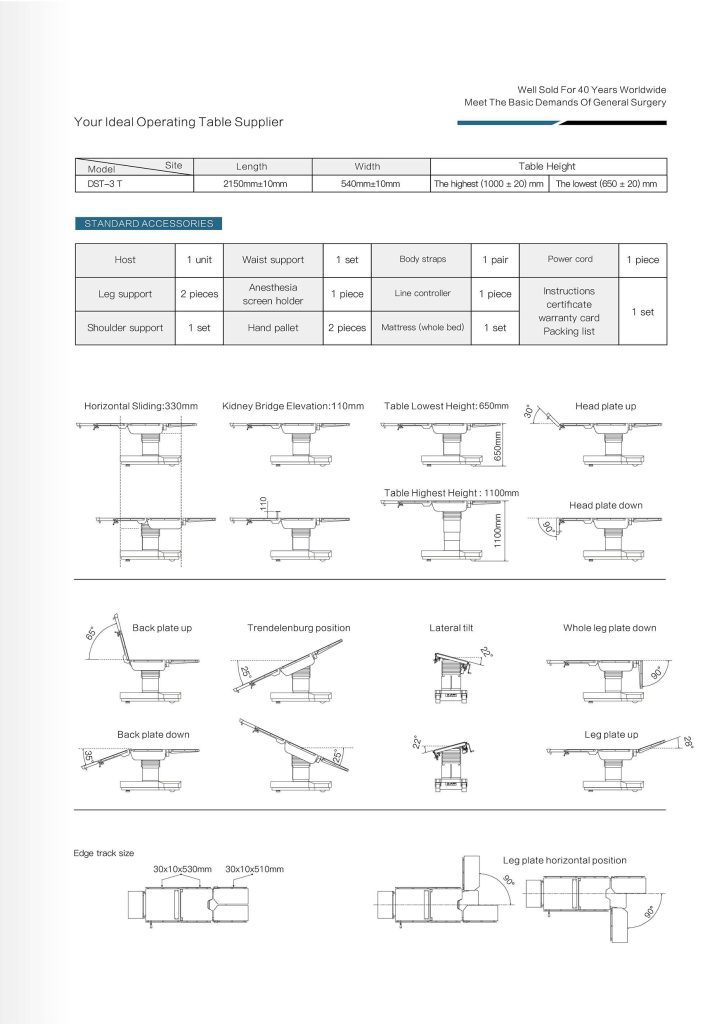 | Trendelenburg/Reverse trendelenburg | 25°±2°/25°±2° |