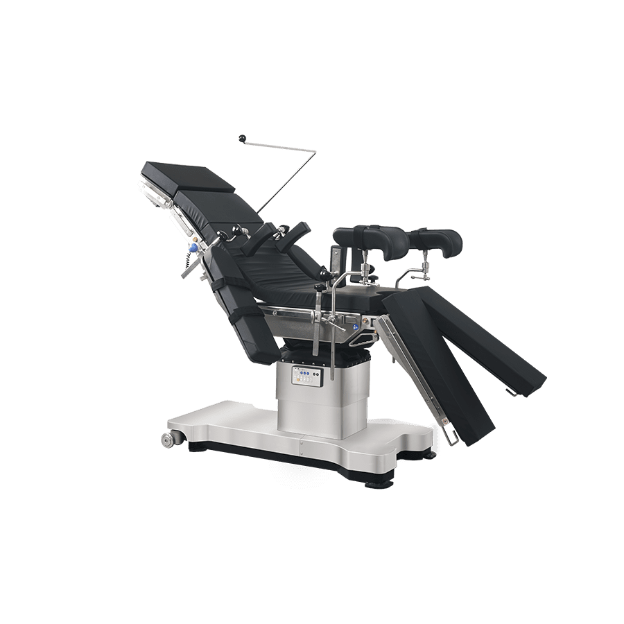 HIGHTLIGHT Electro-hydraulic braking stability; One-key reset/forward-reverse buckling; X-ray penetrable C-arm compatible tabletop.