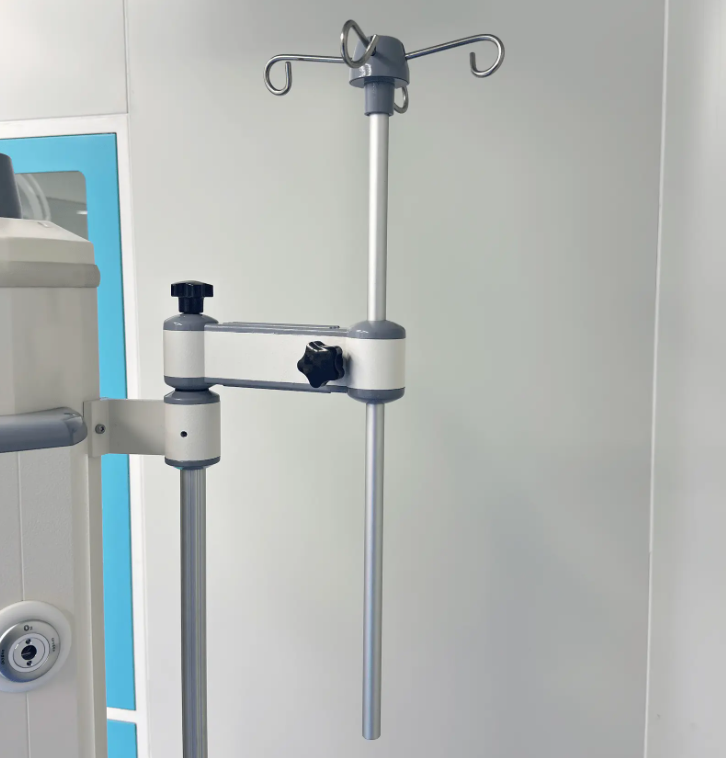 Height-adjustable IV pole designed to meet diverse clinical needs and improve space efficiency.