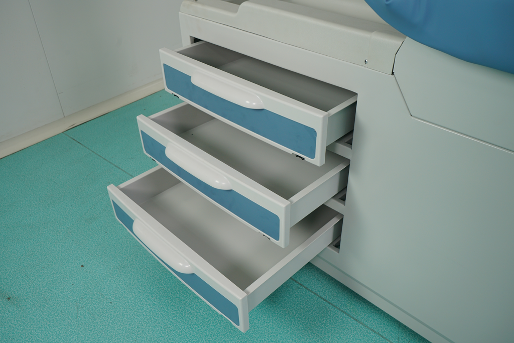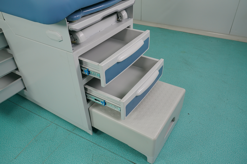 ● Built-in retractable step stool for easy patient access with comfortable ABS surface.
